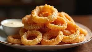 6 Delicious Crispy Onion Rings served with dip if desired.