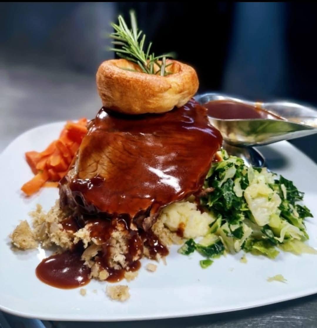 Served With Mash Potato, Roast Potato, Fresh Market Veg, Stuffing and Gravy.